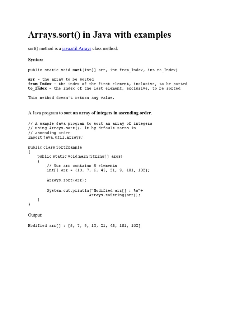 . Public class Arrays extends Object. Let us now have a look at the methods of an. If componentType represents a non-array class or interface the new array has dimensionslength dimensions and.